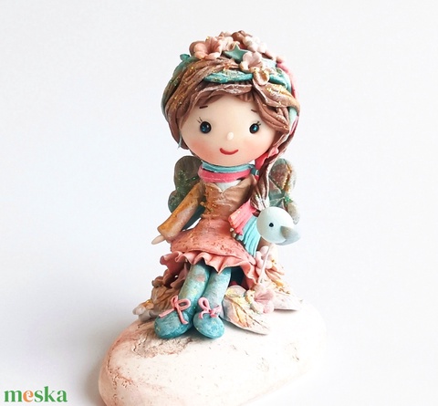 Szerencsehozó kavics tündérke madárral
