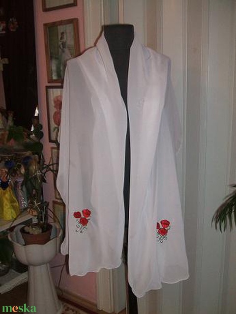 Kalocsai hímzett organza fehér stóla