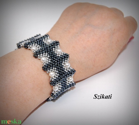 Grafitszürke - ezüst gyöngyfűzött karkötő teklagyönggyel