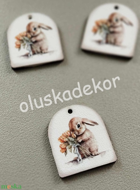 Húsvéti nyomtatott fatábla, nyuszi csokorral