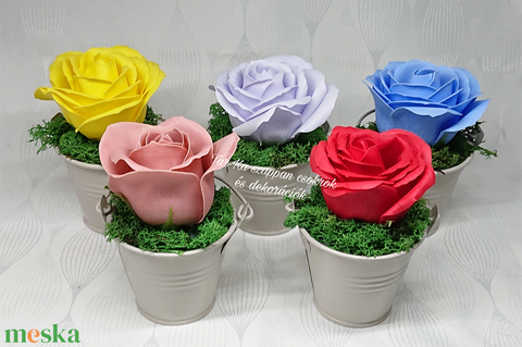 Szappanrózsa kis fém vödörben