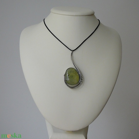 A medál tiffany technikával készült prehnit és ólommentes, ezüsttartalmú ón felhasználásával.