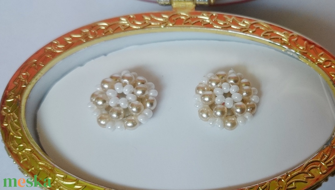 Tört fehér tekla gyöngyös fűzött virág beszúrós gyöngy fülbevaló