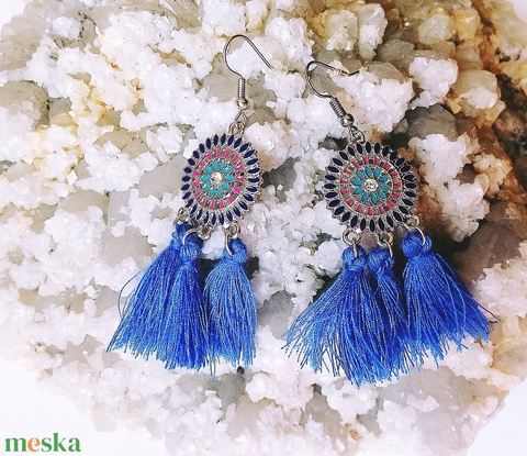 Kék bojtos fülbevaló zománc dísszel