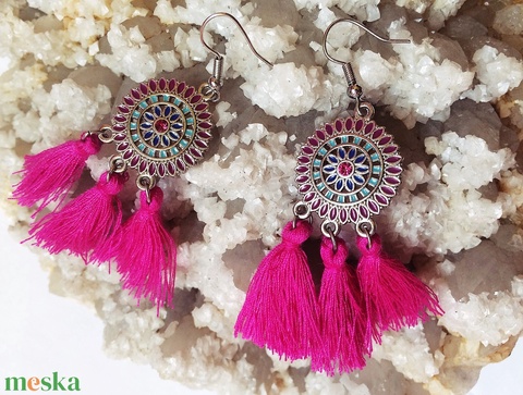 Ciklámen fukszia lila bojtos fülbevaló