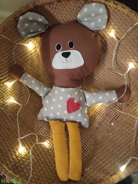 Mackó plüssfigura - Maci csillagos ruhában - puha játék állat - kézműves textil figura - egyedi játékfigura - alvós maci