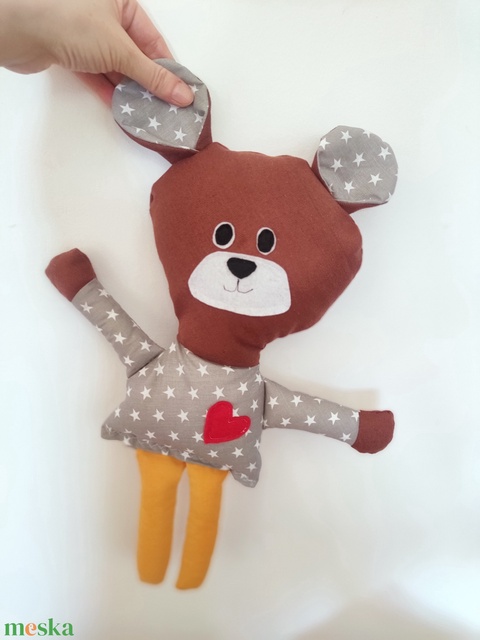 Valentin - napi mackó figura - Kézműves Maci textil figura - egyedi játékfigura - textilmackó - plüssmackó szívvel