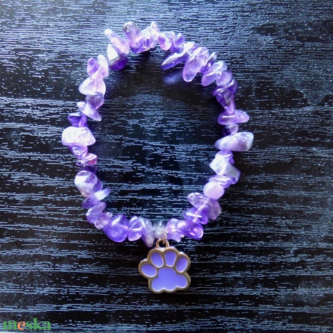 Ametiszt köves ásványkarkötő lila kutya / cica tappancs medállal