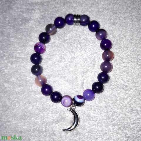 Lila achát ásványkarkötő hold medállal