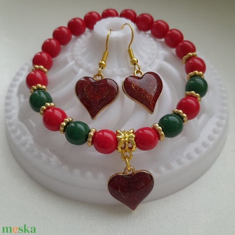 Szivecskés ékszerszett - karkötő, fülbevaló