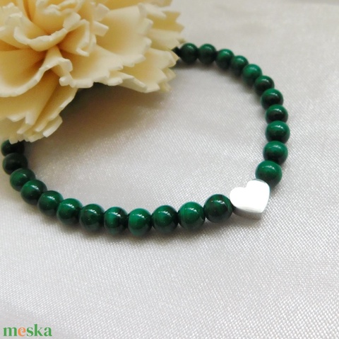 Gumis malachit karkötő, 0,55 cm-s gyöngyökből, acél gyönggyel kiegészítve.