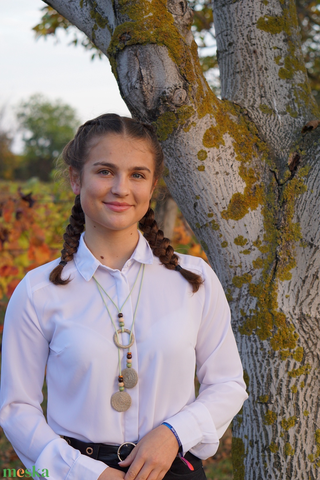 - Anyaga: vastag filc, kézműves kender, viaszos zsinór, fa gyöngyök