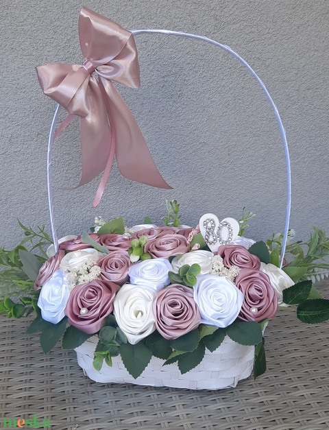 - Anyaga: selyemszalag , csipke, vesszőkosár, hungarocell , gyöngy, fa