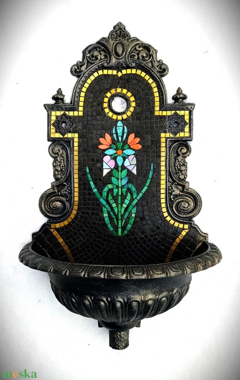 Régi öntöttvas falikút, egyedi mozaik dekorációval