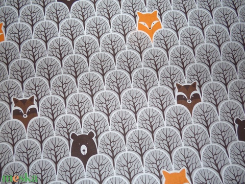 kellékek & szerszámok, méteráru, vászon, pamutvászon, erdei, állatos, róka, medve, maci, barna, ökotex