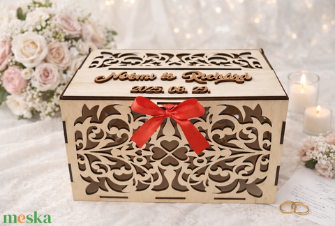 Exkluzív esküvői pénzgyűjtő, nászajándék gyűjtő fa doboz