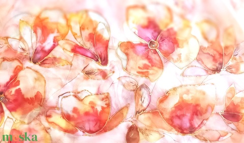 Kézzel festett, művészi és hordható sálak tiszta selyemből. Időtálló érték, természetesen.