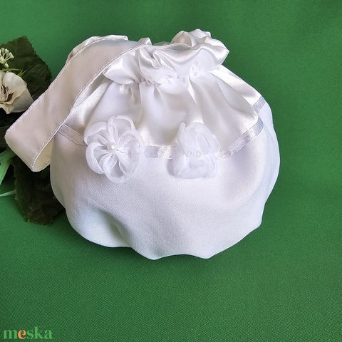 Hófehér, virágos aszimmetrikus menyasszonyi szütyő, kistáska