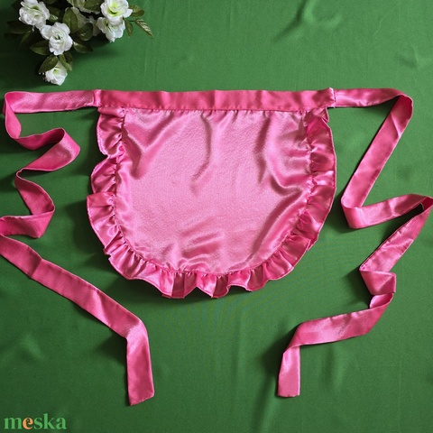 Rózsaszínű szatén, fodros menyecske kötény