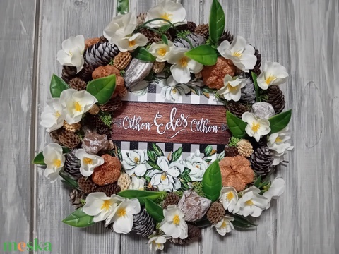 - Anyaga: művirág, fa tábla, polisztirol, termések, zuzmó, szalag