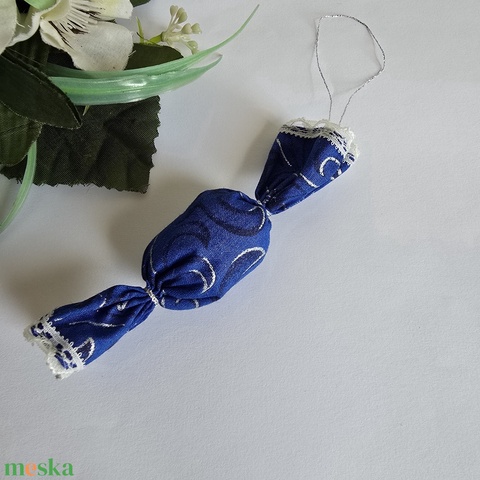 Királykék színű textil szaloncukor karácsonyfadísz, karácsonyi dekoráció