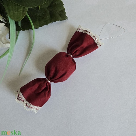 Bordó színű textil szaloncukor karácsonyfadísz, karácsonyi dekoráció