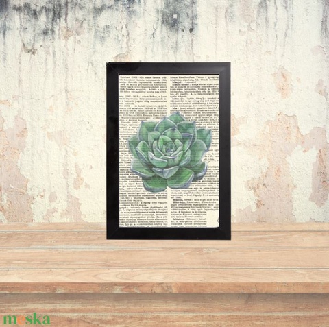 Kövirózsa, pozsgás, kép, könyv, könyvlap, lexikon lapon ajándék képkeretben