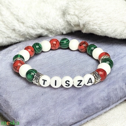 Magyar nemzeti színű ásvány karkötő TISZA felirattal