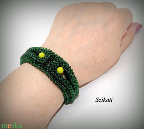 Sötétzöld fémmentes gyöngyfűzött karkötő