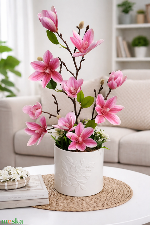 Rózsaszín magnóliás asztaldísz