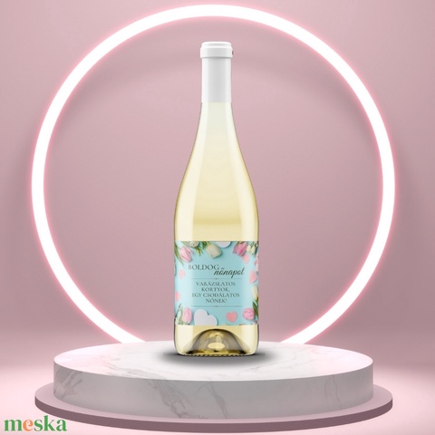 Nő napi üveg címke - tulipánokkal és szívekkel