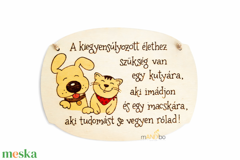 Kutya / macska kedvelőknek - vicces kopogtató - pirogravírozott képecske