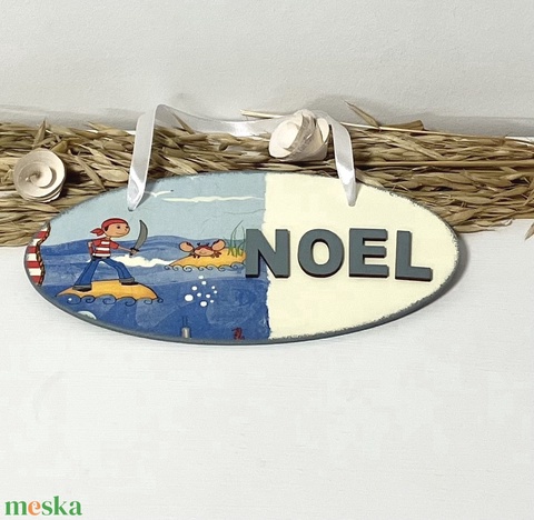 Kalózos névtábla bézs-kékes színben