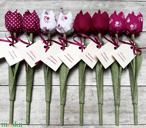 Nőnapi textil tulipánok / szett: 8 db/ ingyen ajándékkísérővel