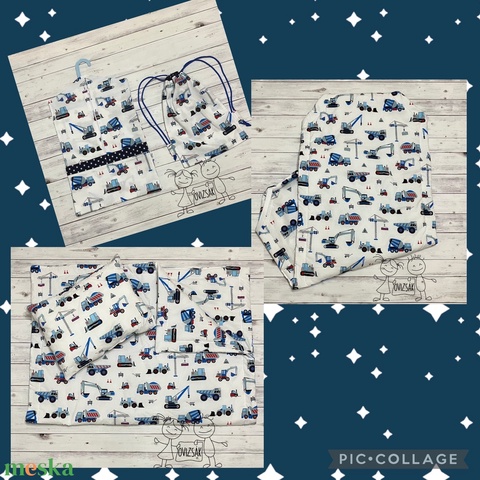 Munkagépes ovis vagy kisgyermek ágynemű + ovizsák tornazsák szett + derékalj