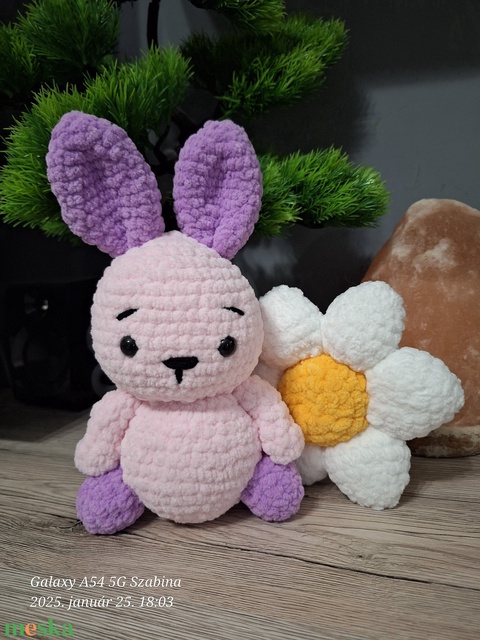 Horgolt nyuszi virággal