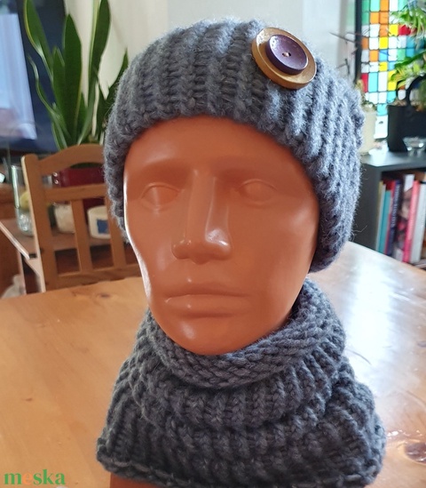 DROPS Wish gyapjú fonalból kézzel készült sapka-körsál szett díszgombokkal