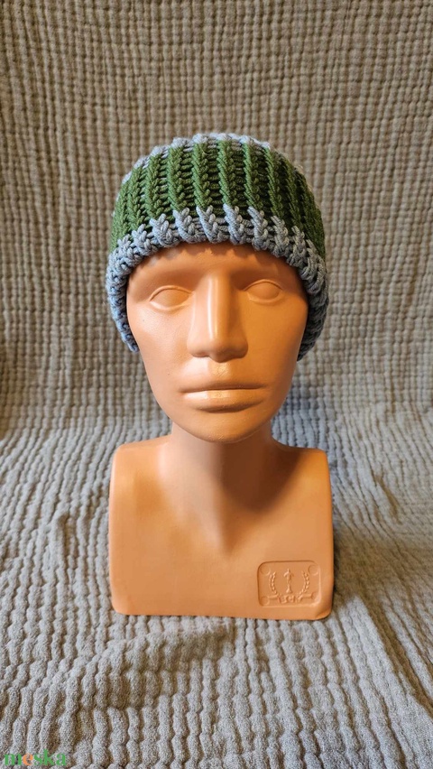 Zöld-kék 100% merinó gyapjú sapka Drops Big Merino fonalból