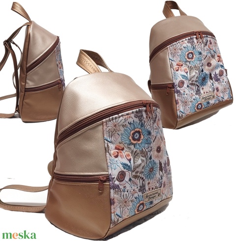 MAXIM BackPack L hátizsák - Réti virágok púder és bronz alapon textilbőr pántokkal