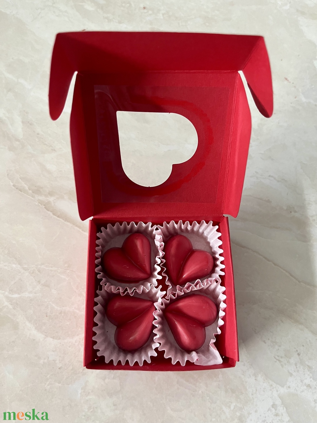 - Anyaga: fehércsokoládé, eper paszta, pisztácia paszta, mogyoró paszta, karamella
