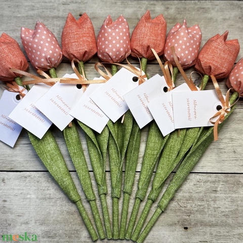 Nőnapi textil tulipánok / szett: 8 db/ ingyen ajándékkísérővel