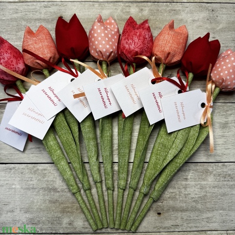 Nőnapi textil tulipánok / szett: 8 db/ ingyen ajándékkísérővel