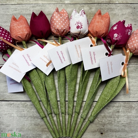 Nőnapi textil tulipánok / szett: 8 db/ ingyen ajándékkísérővel