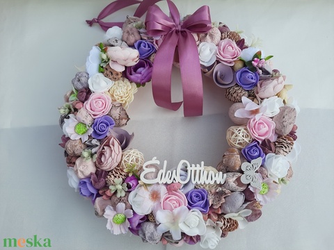 termések, hungarocell alap, selyem szalag, selyemvirágok
