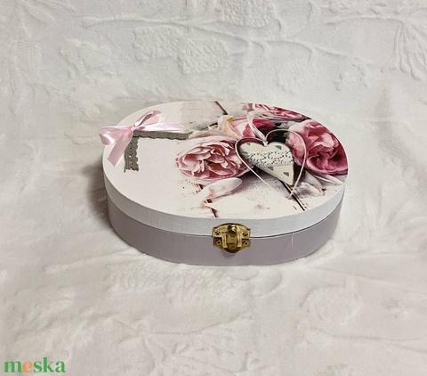 - Anyag/Összetevő akrilfesték, lakk, fa, szalag, csipke