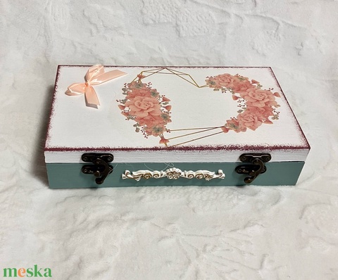 - Anyag/Összetevő akrilfesték, lakk, fa, szalag, csipke