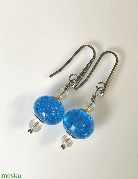 Tenger lámpagyöngy fülbevaló, üvegékszer