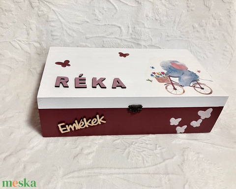 Dekuázsolt névre szóló elefántos emlékdoboz - keresztelőre, babalátogtóra, kislányajándék,
