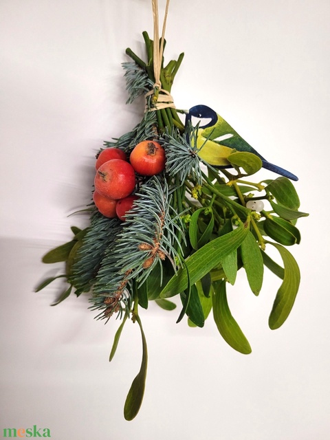 Madár dekoráció, kézzel festett, csipesszel rögzíthető