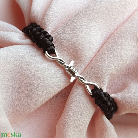 Fonott makramé karkötő - Fekete, szögesdrót medállal